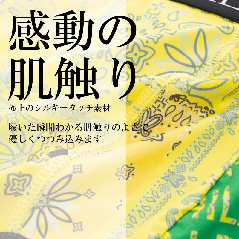 ボクサーパンツには、新作モデルが続々と登場しています。例えば、HawaiianのNightバージョンである「twilight Hawaiian」や、カモフラデザインの定番カラー「カモグリーン」、HロゴBASICシリーズの「希望の光ホープイエロー」など、デザインが豊富です。