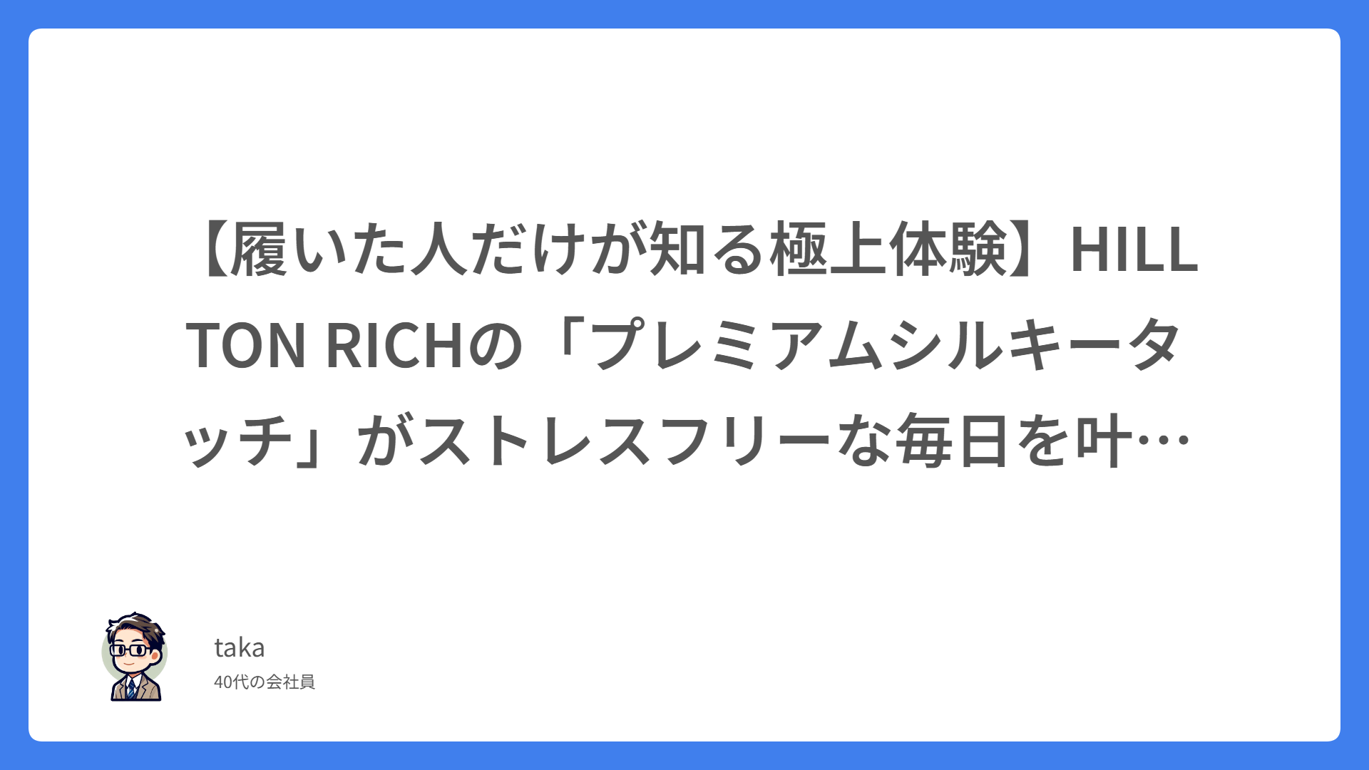 【履いた人だけが知る極上体験】HILLTON RICHの「プレミアムシルキータッチ」がストレスフリーな毎日を叶える理由