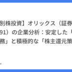 【個別株投資】オリックス(証券コード8591)の企業分析:安定した「超優良財務」と積極的な「株主還元策」を徹底解剖
