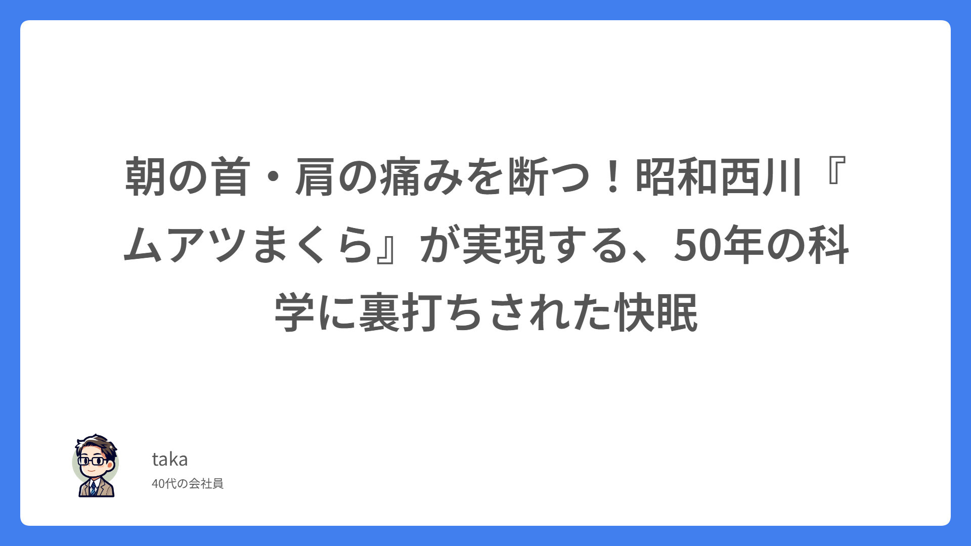 朝の首・肩の痛みを断つ!昭和西川『ムアツまくら』が実現する、50年の科学に裏打ちされた快眠