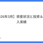 今月は、市場の調整とコムストックローンの計上により総資産は減少しましたが、国内ETFの好調や暗号資産の伸びなど、明るい材料も見られます。